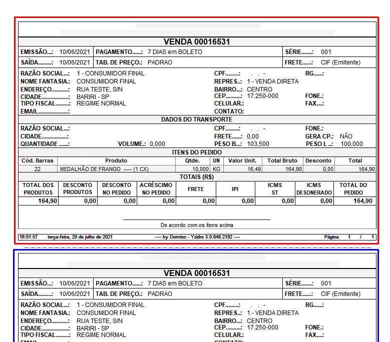 Foi implementada uma nova opção para a impressão de Pedido de Venda chamada de “Meia-Folha Duplicada”.