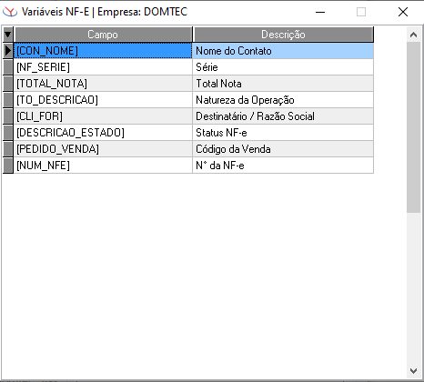 Ao clicar no botão de variáveis uma nova tela (Figura 03) será aberta onde poderá ser selecionada a variável que será adicionada ao texto.